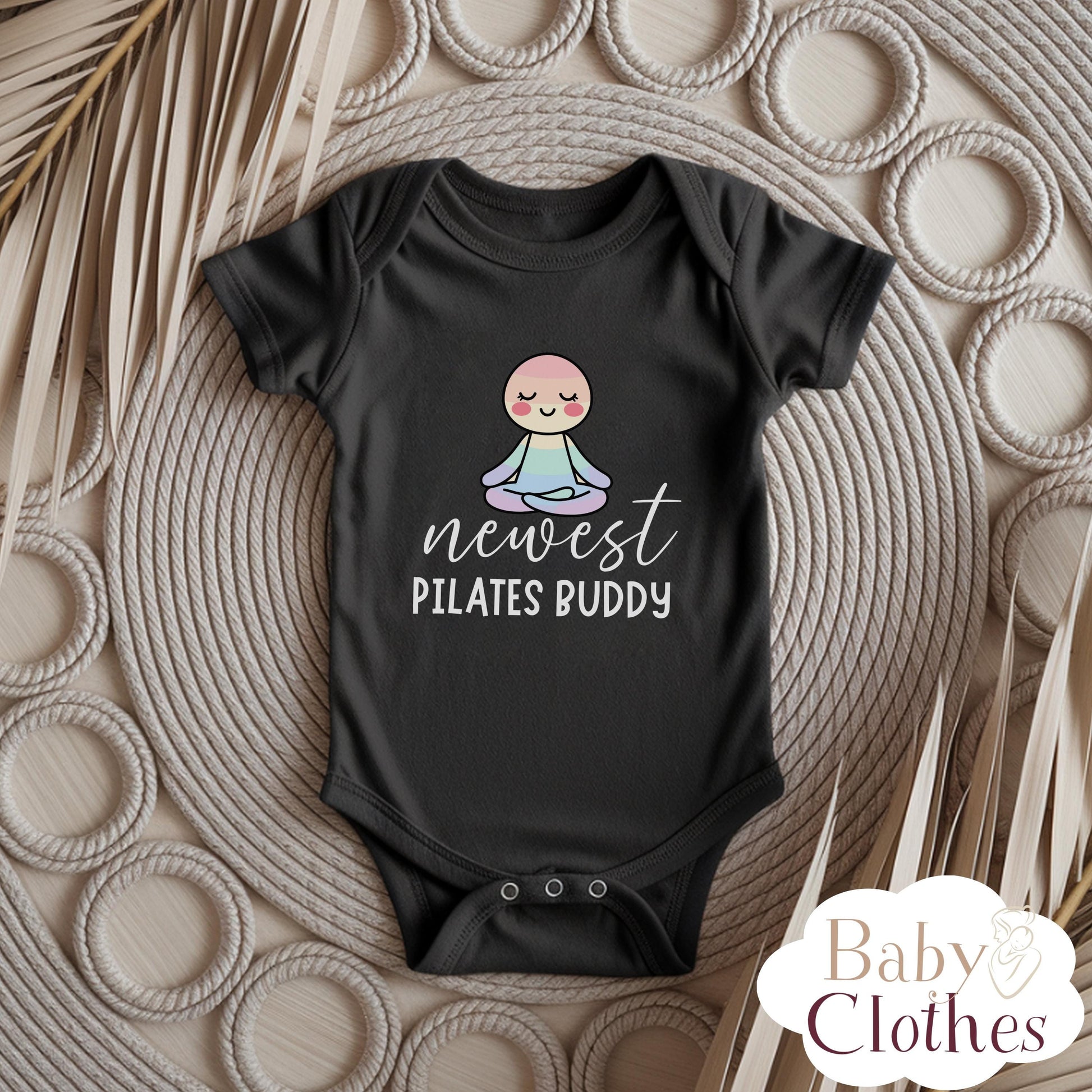 newest pilates buddy baby bodysuit, cute pilates baby outfit, baby announcement, newborn baby gift, daddys pilates partner onesie®
