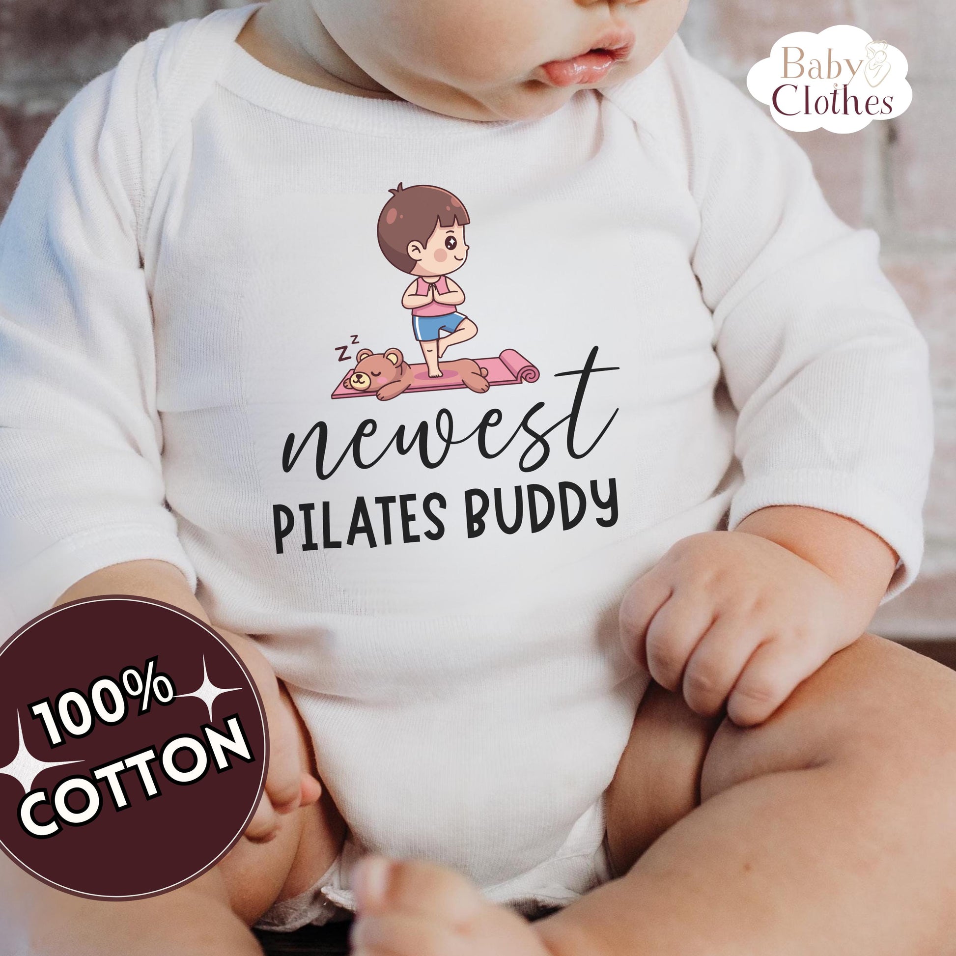 newest pilates buddy baby bodysuit, cute pilates baby outfit, baby announcement, newborn baby gift, daddys pilates partner onesie®