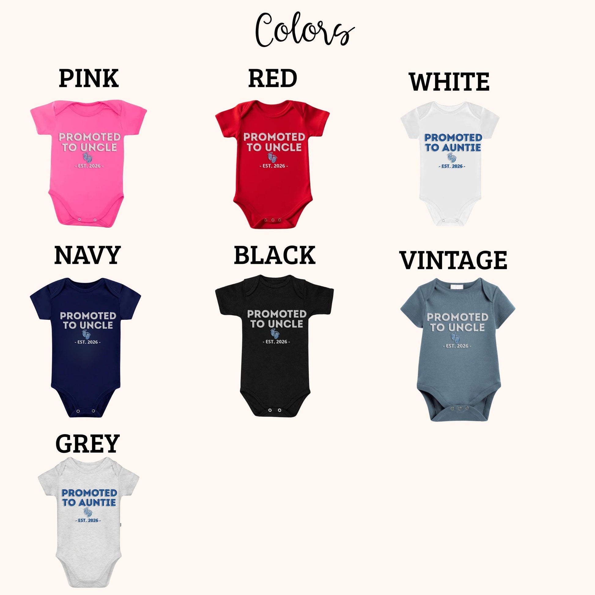 Celebrate a special promotion with a premium embroidered baby bodysuit designed for unforgettable announcements. Personalize the EST year to create a meaningful gift for a godmother, grandparent, auntie, or uncle. Soft, comfortable, and perfect for photos, this keepsake makes a heartfelt gift for baby showers and pregnancy reveals.