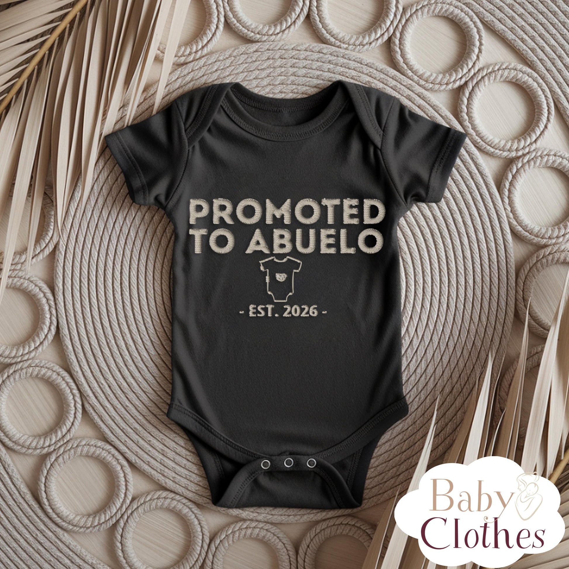 Celebrate a special promotion with a premium embroidered baby bodysuit designed for unforgettable announcements. Personalize the EST year to create a meaningful gift for a godmother, grandparent, auntie, or uncle. Soft, comfortable, and perfect for photos, this keepsake makes a heartfelt gift for baby showers and pregnancy reveals.